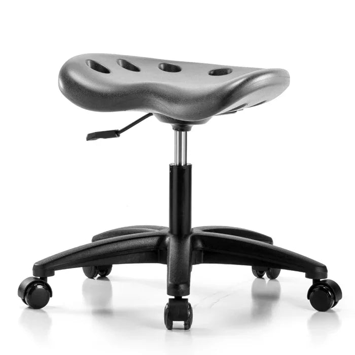 Our Perch Polyurethane Tractor stool features your choice of black rolling, non-marring casters (suitable for both hard and carpeted floors) or black, non-marring bell glides/stationary caps (suitable for both hard and carpeted floors) on a nylon-reinforced fiberglass base. Our rugged polyurethane round seat is self-skinning, chemical- and puncture-resistant, and fully washable.