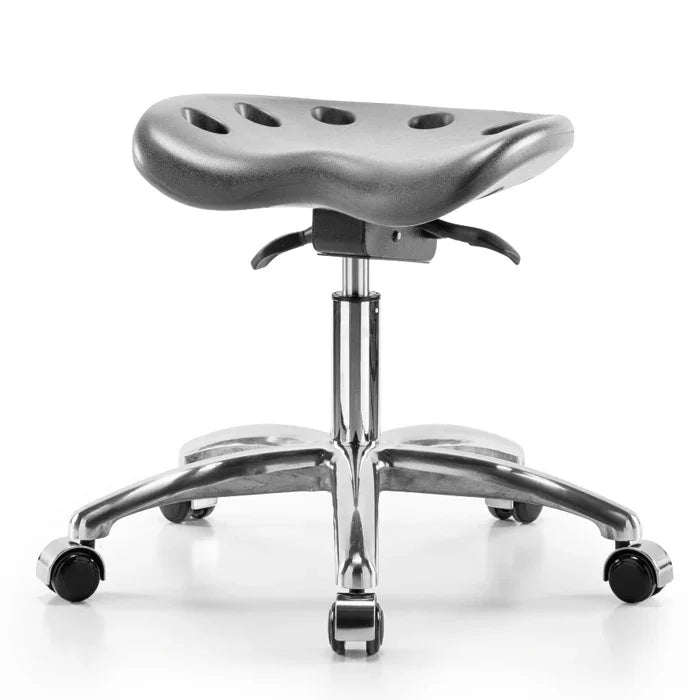 Our Perch Polyurethane Tractor stool features your choice of chrome-hooded rolling, non-marring casters (suitable for both hard and carpeted floors) or black, non-marring bell glides/stationary caps (suitable for both hard and carpeted floors) on a polished cast aluminum base. Our rugged polyurethane round seat is self-skinning, chemical- and puncture-resistant, and fully washable.