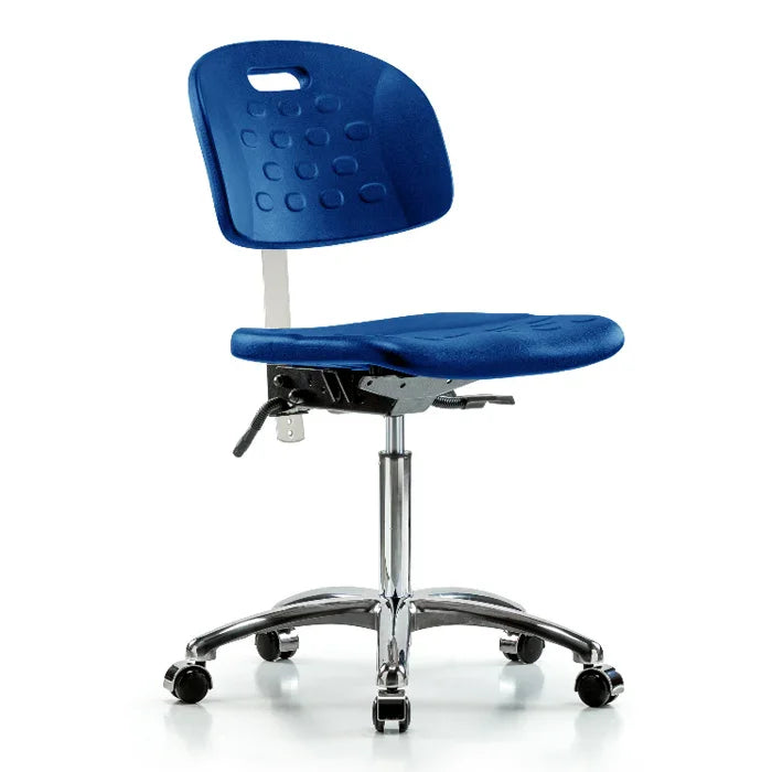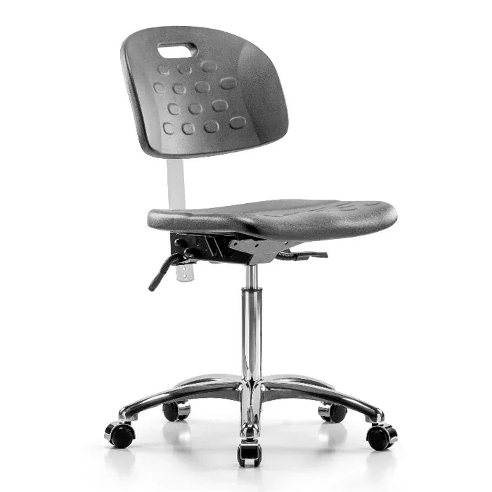 The Cleanroom Ergonomic Industrial Chairs with Handle line from Perch Chairs & Stools is specifically designed to reduce particulate contamination to the local environment. This type of seating is perfect for pharmaceutical, healthcare and electronics sectors. The high-density, durable, molded, self-skinning polyurethane surfaces are puncture, chemical, stain, and moisture resistant and easy to clean, making them ideal for cleanroom environments. These Ergonomic Industrial chairs with handle feature an Ease Adjust System which allows you to adjust the pneumatic height and lumbar back support from a seated position. The lumbar support adjusts 4 ways – up, down, forward, and back for a personalized and posture correct fit. Optional features include foot ring, seat tilt, armrests, and stationary caps. We’ve seen other chairs fall apart almost out of the box. Bad welds, cheap casters, poor cylinders – they’ll do your chair in quickly. That’s why we place so much importance on build quality. This model employs reinforced fiberglass nylon and steel to make sure you can trust your chair for many years to come. We promise to offer the very best quality and craftsmanship, and we guarantee it with a 15-year warranty on parts and a lifetime warranty on cylinders.