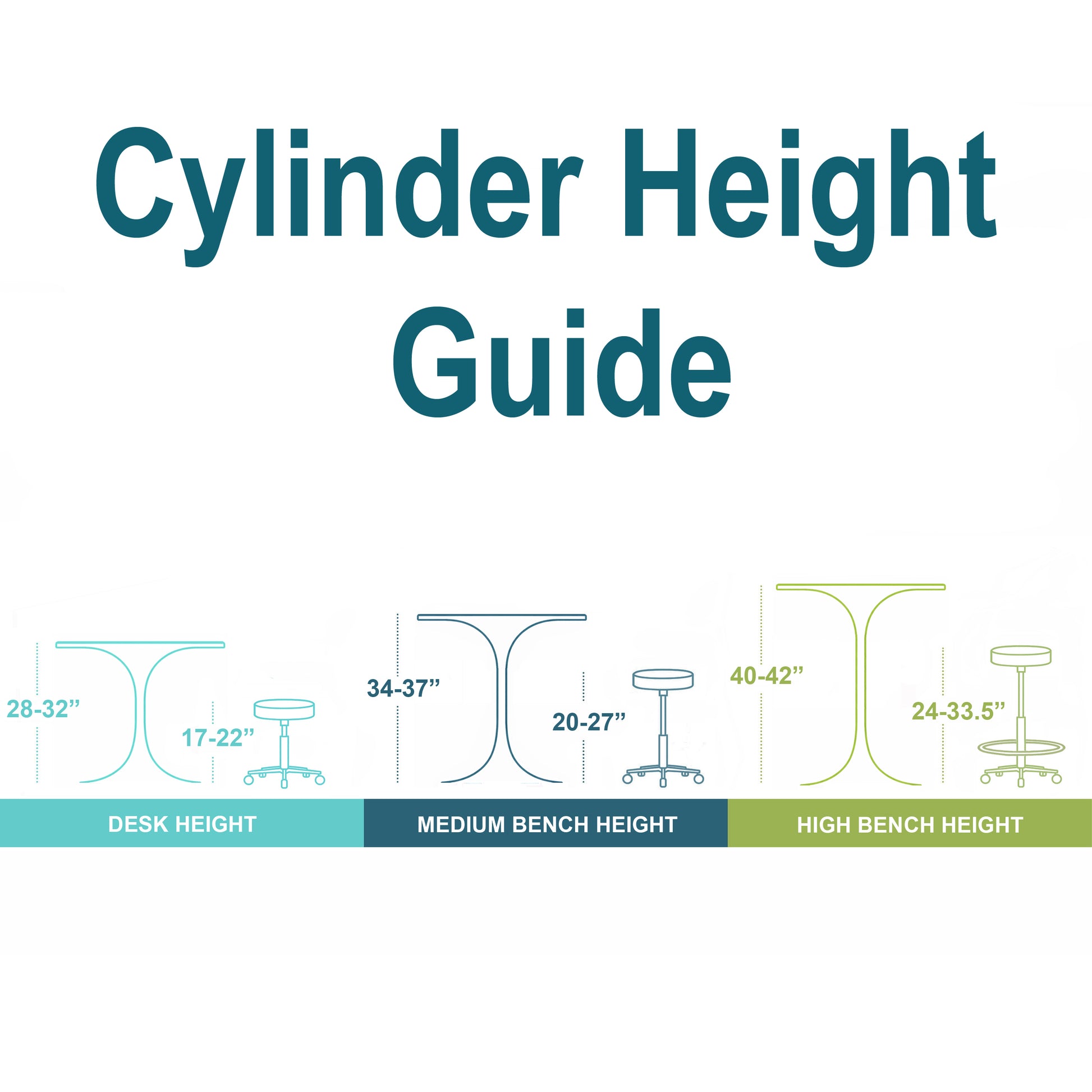 Height (3 Options): Desk Height 17-22", Medium Bench Height 20-27", and High Bench Height 24-33.5".