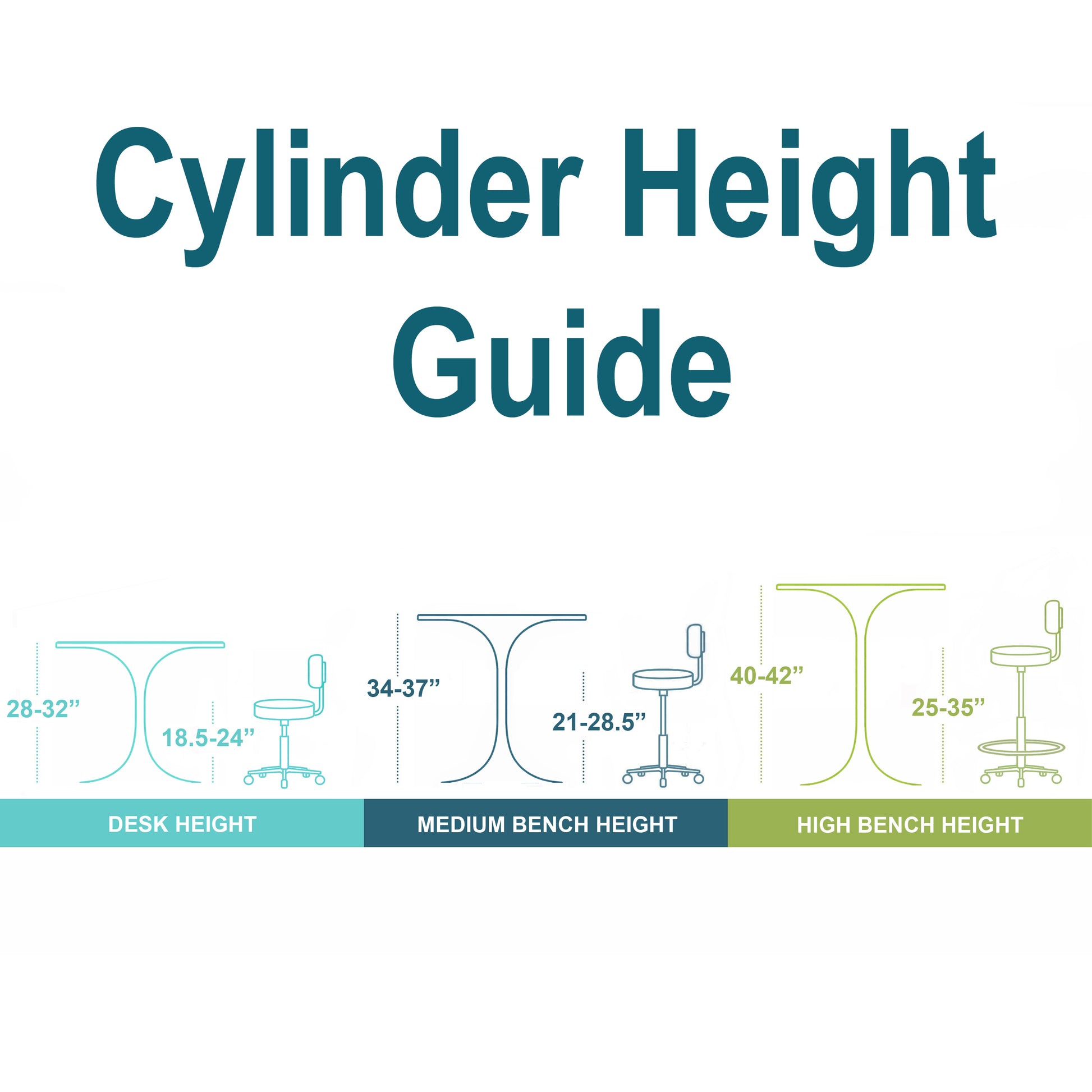 Height: 3 Options — Desk Height 18.5-24", Medium Bench Height 21-28.5", and High Bench Height 25-35".